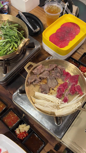 Read moreร้าน ชาบู/ปิ้งย่าง/หม้อไฟ/กระทะร้อน มีวัตถุดิบสดๆใหม่ๆให้เลือกเยอะค่ะ ราคาเบาๆๆจ่ายแค่ 369 บาท (รวมน้ำแล้วนะ) อันนี้คือราคาที่เรากิน ก็กินไปคุ้มๆจุกๆๆเลย แต่ไม่แน่ใจว่าทางร้านมีกี่ราคา ส่วนตัวเราว่าดีเลยนะ ราคาและวัตถุดิบสดจริง กุ้งสดมากๆ เนื้อลายสวย ผักสด ฯลฯ เนยและชีสก็หอม ตัวน้ำซุปในหม้อไฟคือหอมมากๆๆ น้ำจิ้มคือเด็ด มีพวกเมนูยำต่างๆ ทางร้านจะมีใบจดออเดอร์ให้ พนักงานดูแลไม่ขาดสาย ที่จอดรถสามารถจอดหน้าร้านได้เลย โต๊ะมีเยอะพอสมควร แต่บางจังหวะคนอาจจะเยอะมากๆๆขนาดถึงว่าต้องจองคิวกันก็มี ทางร้านรับจองคิวนะก่อน 16:00 โดยรวมถือว่าดีราคาเหมาะสมกับวัตถุดิบ...