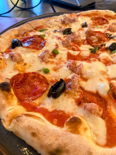 Read moreMid sized restaurant w/ VERY limited parking. Family of 5 drove here primarily for the pizza (we are pizza lovers on a mission to find the best local pizza). We ordered the Marinara Pizza, and added mozzarella cheese & spicy pepperoni. The pizza was good; I would say above average. Definately way better than what you'll get at a chain like "The Pizza Company", but the pizza was the only thing we really enjoyed. We also ordered the Ceasar Salad (the greens were lukewarm and the dressing was lacking the ceasar dressing punch we are accustomed to... it seemed super creamy, but bland in flavor [this was a theme for the other dishes we tried]). We also ordered the Bolognese Pasta & a Seafood Pasta. Both pasta dishes were disappointingly bland in flavor and lacking anything to make them special in our opinion. If we go back, it will be exclusively for the wood burning oven pizza. I give the pizza a 6.5/10; for reference I give "The Pizza Company" a 3.5/10. Super objective, but that's my 2 cents. If you're close by, don't mind the inflated prices, and want somewhere relatively quiet/clean/friendly/exclusive/well decorated to go for dinner, I say it's worth a shot. But only if you're local. I wouldn't drive any more than 15 min...