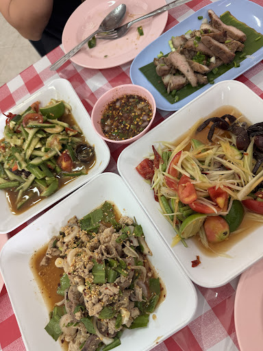 ร้านส้มตำเล็กๆ อยู่ระหว่างวินทัวร์และโลตัส ถ้าขับมาเร็วๆ อาจจะไม่เห็น มีอาหารให้เลือกหลากหลายอย่าง ราคาย่อมเยา ปริมาณค่อนข้างเยอะ มีบริการส่งสถานที่สถานที่สถานที่ข้างเคียงด้วย เมนูเด็ดที่แนะนำคือเสือร้องไห้ย่าง (มีเป็นบางวัน) ปลาร้าไม่ค่อยเค็มจัด ส้มตำใช้มะนาวจริง อร่อยถูกปาก มีติดหวานเล็กน้อย เจ้าของร้านพูดเพราะน่ารักบริการดี ...