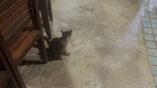 The restaurant’s resident cats provide great entertainment as they chase each other and play in the dining area.
