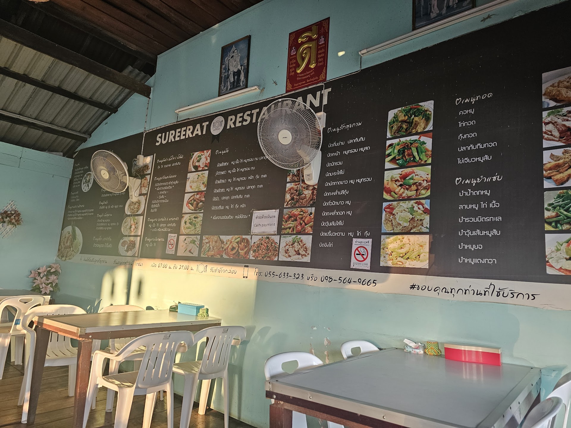 Read moreThey have a huge menu. Very affordable. We had the pad thai (chicken and shrimp, same price). The noodles were stuck together. Not so good. You need to walk through the kitchen to go to the toilet. On my way back, I saw the cook (a woman) tasting the soup she was cooking for the only customers (besides us) in the restaurant. She used the same big spoon to stir the soup after tasting it. She didn’t notice I saw her. Not so good as I already wrote. I told my wife and she changed her mind. She wanted the tum yum soup but decided to go for the pad thai instead. We ordered after my “visit” to the kitchen. Beer is cheaper than in most...