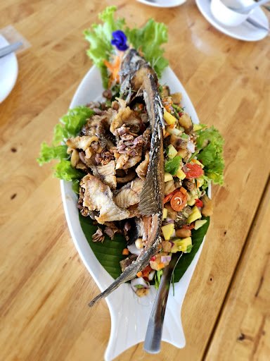 Read moreร้านอาหารติดถนนใหญ่ ก่อนถึง อนุสาวรีย์ดอนเจดีย์ ร้านกว้างขวาง มีห้องแอร์บริการ อาหารมีหลากหลายเมนู รสชาติดีเยี่ยม ต้มยำรสแซ่บมาก ไข่ตุ่นก็ดี ปลาสองรสก็เยี่ยม ที่ทำคนกินเผ็ดกับไม่กินเผ็ด กินด้วยกันได้ในเมนูเดียวกัน พนักงานบริการดี ที่จอดรถอาจไม่สะดวก ต้องจอดริมถนน...