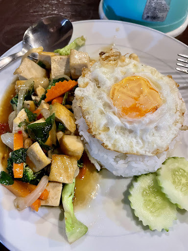 Read moreIt looks a bit off for a western eye, used to perfect clean and touristy places. But if you can let go of those ideas, you can get really tasty food for very good prices. I got fried broccoli with tofu and fried bananas, was delicious and cheap (only 160B - about 4.5€). Service was fast, the waiter spoke good English, the food was delicious and the dogs and cats from the place made the...