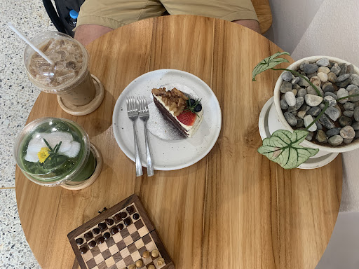 I arrived at Surat Thani Train Station from Samui around 5 PM, but my train didn’t depart until 10:30 PM. Based on the reviews, this cafe seemed to be one of the best nearby, so I decided to give it a try — and I’m glad I did. As soon as I walked in, the owner (I believe she was) asked if I was a foreigner, as people sometimes mistake me for a local based on my appearance. She then offered to recommend one or two items from the menu. Since I had already had plenty of coffee that day, I opted for the coconut ice cream, which was absolutely delicious.