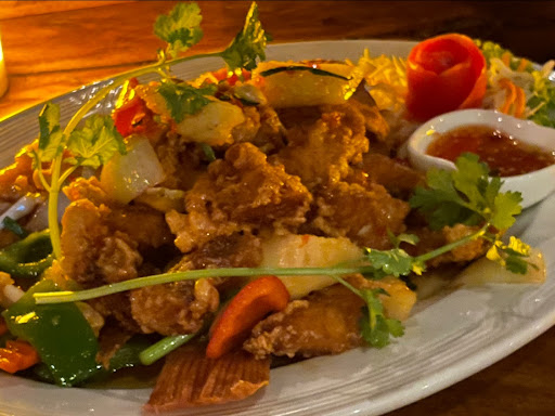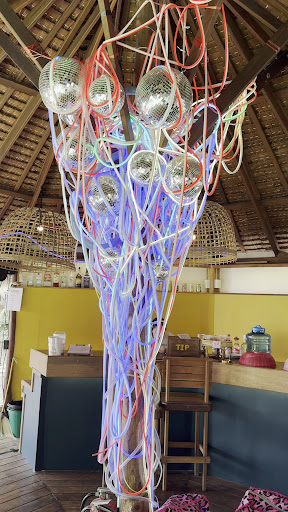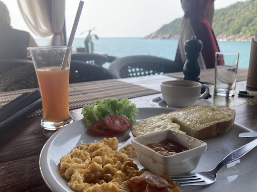 The restaurant is super cute, the lighting is calming and warm, and they have good music playing all the time (chill dj mixes). The food is the best on this part of the island (literally the best and all the long-term residents know it). The prices are fair, and the team is so kind and helpful. And the view from any table in the restaurant is unbeatable. Order the Pat Cha (fried red snapper with pineapple, cashews, bell peppers, onions, & more). It will blow your mind. The lemon mint shake is also reallllly good. And the Burmese salad is also incredibly delicious and fresh. We stayed in the huts for six days and ate every meal at Bamboo, and tried different dishes all the time, and we always left super content and full and happy.