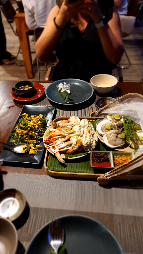 Food looks amazing, taste is good. For a table of 2, we received 2 grilled flower crab and 4 grilled prawns. That was spectacular, served with their spicy green chilli sauce. The next was a fried fish, with roe served with an amazing honey fish sauce, which became the dip for many of our dishes. The squid and the sauce it was in, tasted out of this world, coming from an Asian who has tried many such dishes and it was elevated. The last thing that arrived was the mussels in coconut curry. The coconut curry was a little too thick that it was hard to enjoy to be brutally honest.