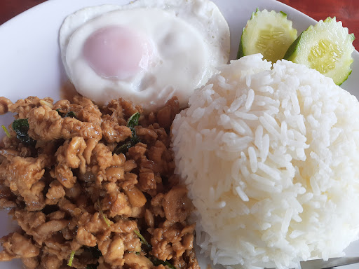 Stir Fried chicken with basil was just OK. Rice was cooked perfectly.