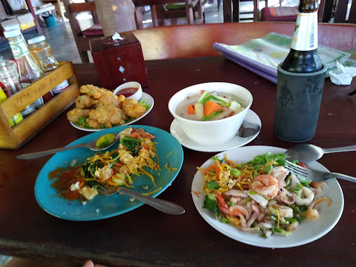 This restaurant was a lifesaver for us. My husband and I are very picky eaters and were dismayed to find the restaurant at our resort to be very poor quality and overpriced. Luckily this place, a few 100m walk away, was incredibly good! And incredibly cheap! We would be hard pressed to spend more than 250bhat here if we tried -that's two meals with a beer and a juice. The two lovely ladies running the place are kind and quietly funny, everything is clean, and the food just perfect. We ate here every day, for our seven day stay in Mae Haad. Here are our favorites: Breakfast - try the pork basil stir fry with a fried egg, and a pancake with fruits and coconut. Lunch/Dinner - try the pad Thai, the green or red curries, and the fried veges with cashew nuts was divine. They were really accommodating of our odd requests like replacing the cashews with peanuts, or making a dish vegetarian. Absolutely love the place and if we ever come back to Koh Phangan - we'll make a special trip to visit. The dishes here are not spicy BTW - but they give you enough chilli options at the table to spice any dish up to...