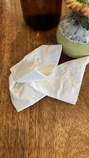 When you eat a dish like this, you always need napkins, but for some reason, the waiter only brought me one napkin, and that was it — no more napkins on the table. 🥲