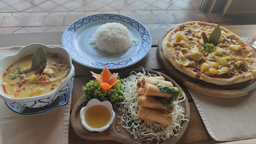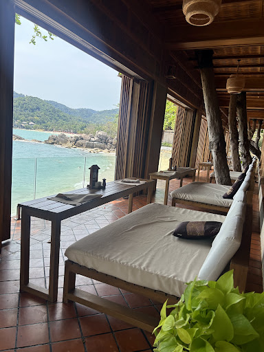 Read moreYou can lay in beds to eat your dinner overlooking the sea which feels very luxurious. The food was the best Thai food I've had so far on our 3 week trip! We had massuman curry, veg spring rolls & rice and a massuman pizza. The watermelon shake is fresh and the Virgin colada was also great. The Thai tea wasn't the best I've had in Thailand. Total for all of that to as around £33. Similar to English prices so not the cheapest in Thailand. The QR code ordering can be temperamental so the service lost one star for this. However the service staff are very welcoming and brought us over mosquito repellent when they could see us struggling! The food came quickly too. I really like how they have built around the trees here rather than cut them down!...