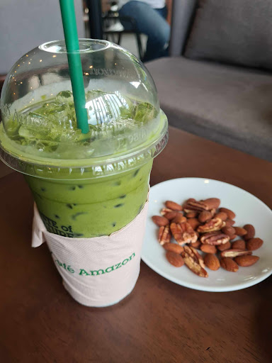 เมนูเครื่องดื่มมีให้เลือกครบตามสไตล์ Café Amazon ไม่ว่าจะเป็นกาแฟร้อน-เย็น ชาเขียว โกโก้ หรือเมนูสมูทตี้ผลไม้ต่าง ๆ รสชาติมาตรฐาน อร่อยได้คุณภาพเหมือนทุกสาขา ส่วนขนมก็มีให้เลือกพอสมควร เช่น เค้ก โรล ขนมปังต่าง ๆ
