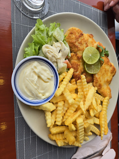 We came here for lunch after visiting the Green Room next door and were thoroughly impressed. The owner of the establishment came to greet us once our food was delivered to our table to make sure everything was to our liking. Super nice guy! He confirmed that all the ingredients are fresh, which you can tell by the amazing flavor and quality. My husband got the chicken club sandwich and I got the spaghetti bolognese. Both were amazing. There is a lovely rooftop bar. And the views….I mean I’ll let those speak for themselves in the photos attached to this review. STUNNING. So happy we stumbled across this little undiscovered gem. Do yourself a favor, and visit this lunch spot on your next trip to Koh Samui!!!