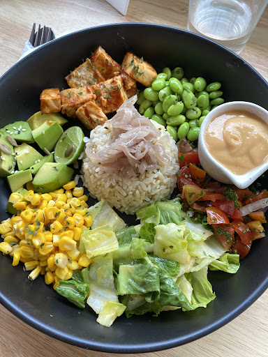 I ordered the sushi Bowl for 260 which is normal in Koh Phangan for good food - it’s pricy but worth it! Staff was so nice and they asked for what I wanted to swop the rice. I wanted to have it without rice So nice they asked me! Luckily it was possible and the presentation was bomb Very pretty and good amount of food I got some salad with their pomegranate dressing(?) it was a great swop! The carrot salmon is Amazing! The tempeh even better : still hot and crisp and nicely flavoured. Avocado fresh and nice edamame, cucumbers, pickled and more Highly recommend this place I know it is hard to choose, but make sure you go