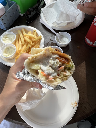 Chicken shawarma, the meat itself was greasy, lacked spices and salt, and had some pieces of chewy skin which completely put me off. The sauces I took were tahini & garlic yogurt & they were bland and tasteless. The wrap quality was so bad, and it was breaking. Falafel wrap, the falafel itself tasted fine, but was undercooked on the inside. Again the whole wrap was bland because of the unseasoned vegetables and bland sauces. Same poor wrap quality. The Marguez wrap was bad, really bad. The marguez itself was so overcooked and dry, and they filled the wrap with mayo and ketchup which is a really bad option with marguez because it makes it so sweet. Again, the same poor quality wrap.