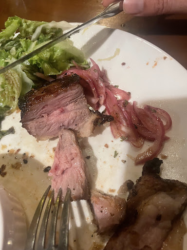 We ordered the antipasto platter for two and after both the pork shashlik. Waiting time between the two dishes was quite long, but the restaurant was full so we were not too bothered. However when the food came we didn’t get cutlery, and when asked for it our waiter proceeded to first serve the table next to us.