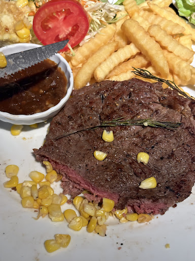 Subpar cuts of meat, an overcooked pork chop, and somewhat clueless service. Staff struggled to understand my request for medium rare ribeye, as if 'in between' was some rocket science. They kept asking and making an effort to understand whether I wanted 'medium' or 'rare' 4 times. The pricing of their food I will describe as fair for some menus and are below-average for their steak selections; but the quality turned out even lower than their advertised pricing - possibly something to expect here. My companion also confirmed that her pork chop was dry, flavourless and forgettable. For her sides, she asked for mashed potatoes, but got roast instead, which confirms another point of the staff's lack of understanding. Barbecue sauce was a sloppy mix of some large garlic chunks that didn't belong.