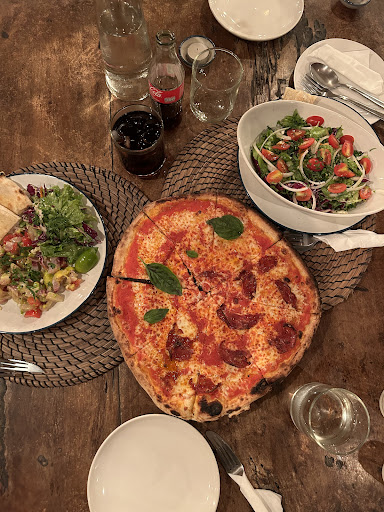 Bruschetta arrives, it's just baby tomatoes with oil, salt and pepper and dab of vinegar.. that's it. No basil, no cheese, no onions no garlic. I understand Italian food is simple but 200 baht for 1 piece of bread cut into 3 and some tomatoes.. very disappointing. We asked for basil, they said they had none even know other plates had basil. They ended up getting basil but put it on our pizza.. anyways good try but overall miss