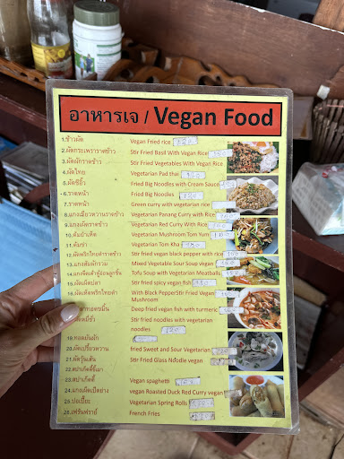 Read moreBeing a vegetarian I am always looking for a good jay restaurants and this one did not disappoint. For a 100 baht you get 4 items from the prepared trays plus rice--very generous servings-- and it is delicious. She may have a menu for made to order items as well but not sure.