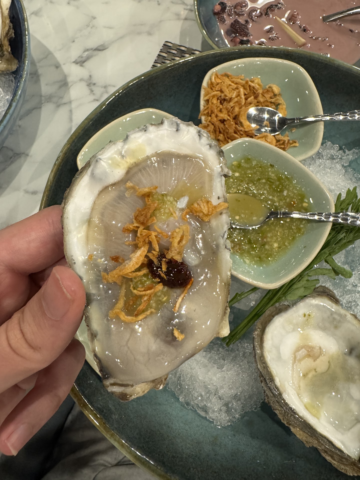 That said, the food itself had its highlights. My massaman curry was delicious with a generous portion size, and the oysters and pad krapao were also excellent. However, it was disappointing that half of our table received noticeably small portions, even after ordering 2-3 dishes each, leaving some guests hungry.