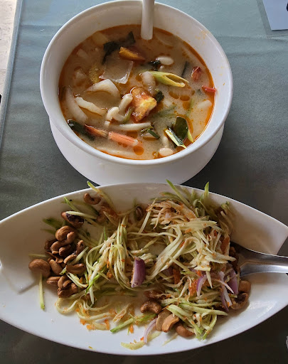 We returned to this restaurant once more, as we thoroughly enjoyed everything we ordered. The southern yellow curry with African pompano fish (ปลาพราม) was particularly satisfying. The salted garlic shrimp was delightful, especially when paired with scrambled eggs. The fried crab cakes and fried marinated pork belly were equally enjoyable, with each dish bursting with flavor. Additionally, the owner graciously treated us to a spicy shrimp dip, which was simply delicious. It is rare to find such excellent food accompanied by exceptional service, but our experience at this restaurant truly surpassed our...