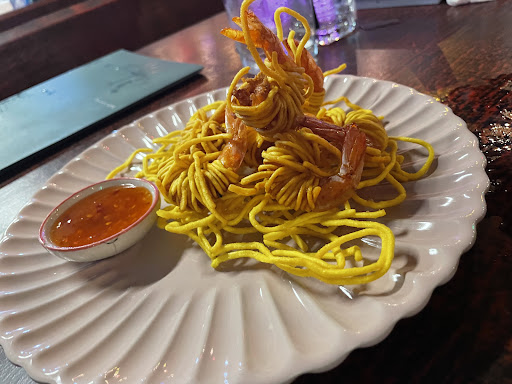 Read moreI had dinner here and it was just amazing. The food was delicious - I got a spicy chicken dish with rice and my boyfriend got a noodle dish which was even better. Drinks were delicious - I had a few mojitos and they were all very well priced, 80 baht each! Meals were also very well priced and service was pretty good - maybe at times a little slow but it didn’t affect us at all. The atmosphere was also lovely - there were lights hanging, and lovely bamboo furniture, and a friendly dog and cat too! I really recommend this...