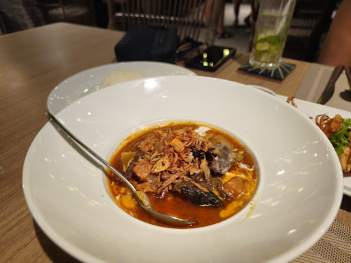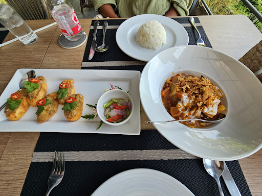 Not sure why this place is getting 5 stars, very very average Thai food, setting is nice but seriously : the food is bland as hell (maybe people don't know what real Thai food is 🙄) . The masaman beef cheeks was probably the only reasonable dish, beef was nice but the masaman sauce lacked omph. The egg pork was mainly pork-belly lumps of fat - hardly any meat. (I have made way better at home}. The chicken cashew was terrible - one priece of chicken wasn't even cooked through,and absolutely bland. Wife said her squid was alright so at least they got that right. My martini was awful - pretty sure they used cheapest GIN they could find lol. Was supposed to be a treat for our anniversary but total let down. We ate at hole-in-the-wall mom's place the night before and that was 1/3 price and twice better food (real local food!) If you like real Thai food... Don't go there. Yes the photos look good......