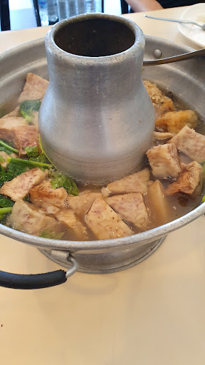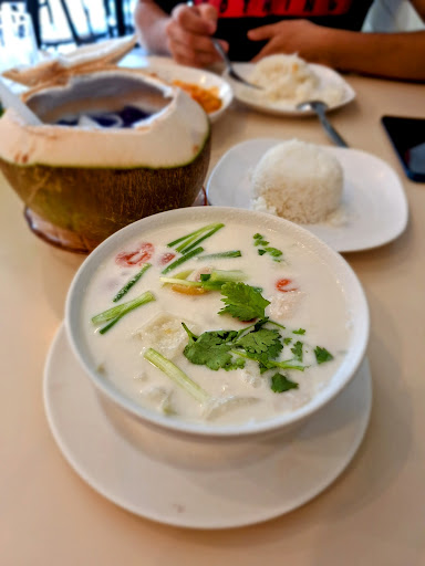 Well Deserved Michellin star. Glad my travelling companions managed to find this place and drove all the way to have lunch here. Boss lady could communicate with us in English,which was fortunate, as most of the other diners were local Thais, hardly any Farangs or other tourists ard cept for my goofy table of 3😬 Lady Boss recommended us a few dishes,but strongly suggested to us that we should try their fish soup hot pot with taro,which she said was their house specialty. All of us couldnt agree more. It was chock-abloc with de-boned fish slices which were very fresh,fleshy and sweet tasting. Soup was outta this world savory and sweet at the same time with obvious hits of umaminess. We couldnt stop drinking it till the last drop was drained. But mostly,the taro was soooo darn delicious. Plump and fleshly,not veiny nor stringy. Was sweet and very fresh,probably grown locally. I would thoroughly reccomend anyone coming to Surat Thani to come over here to try their food. Nothing but home-cooked goodness and warm hospitality all around.