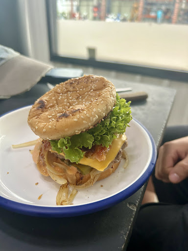Read moreMr Nin...is Mr Burger ...like a superhero with a not so secret talent....he starts with quality beef ( expensive here in Thailand) and Pork ( high quality everywhere) and grilled them to perfection....the bacon is crispy and delicious , the grilled onions add to the tastiness ...pickles and a tasty special sauce...fries were spot on as well..located across the transformer symphony music school and down the block from Surratthani Honda Bigwing...you have to get yourself a burger...