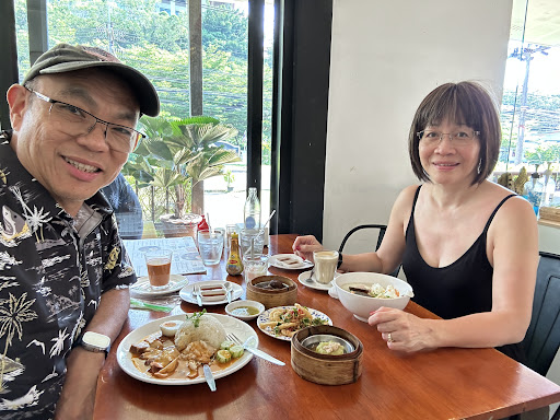 The setting is pleasant, with an air-conditioned section and a terrace for those who prefer to dine outdoors. There’s a large parking area, conveniently located on the road between Hua Thanon and Nathon, right across from the road leading to the courthouse.