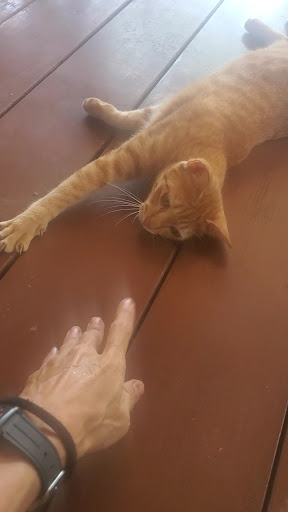 It's a quiet restaurant that has quite the gecko night life! It was really fun watching all of the geckos hunt bugs on the ceiling and walls. Peep the geckos running around on their sign (pic included). Honestly that was an awesome experience. A little sad watching a lil baby gecko turn into a play toy for a stray cat that wandered in, but welcome to the jungle...nature is metal.