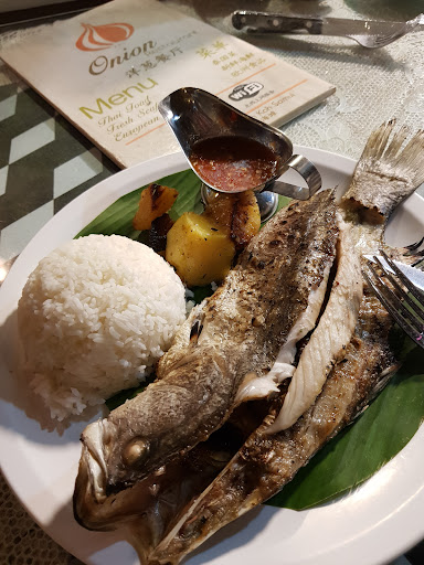 Read moreWe thought we would try the Onion Restaurant as we had walked past it a couple of times and it looked popular. Service was not very good, despite what we read on the reviews, as we had to constantly remind the waitress about food and drink missing from our order. When the manager was around he had a good overview and directed the staff very well, when he is distracted the service drops and is not so good. Food comes out not necessarily how you ordered it, mains courses before appetisers, might be due to the lack of good or new staff. Our food was overall just OK, Duck was well over cooked and chicken dishes good. Drinks are reasonably priced and their 5 set menus of fish and meat are good value. What we didn't like is that there is no tables set aside for smokers, as the table next to ours had a man smoking a cigar between courses which wasn't good at all and lastly like many other restaurants it had large screens playing adverts, music videos orsport so trying to appeal to all people and missed. We will not...