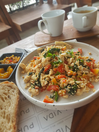The food was good. Not delicious but good. Could've used some more spices for the tofu scramble but the banana pancakes were pretty nice, so soft and sweet. The iced latte on the other hand was a bit disappointing. Too watered down for my liking. The presentation of it all was great though.