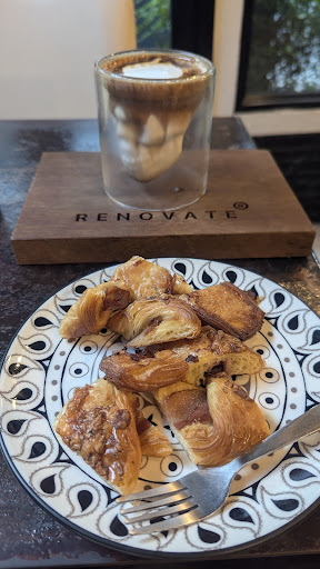 Read moreThis coffee café looks very inviting with its big door which opens up and in the middle of the door it will revolve half way before it shuts itself on it. Once in, the coffee making counters are on the leftside and the ordering counter is in front of you as you walk in and the pastry counters are next to the ordering counter.Overall very cozy and relaxing café. We ordered 2 ice lattes and a butter croissant which came with whipped cream on the side.My coffee was very nice as I like it not to strong and no bitter taste in the mouth just the way I like it.So if you in this part of the town in Surat Thani its worth a visit and you want be...