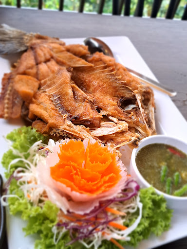 Read moreVery nice restaurant with picturesque view on the river bank, it looks brand new with welcoming people and nice atmosphere. Thai food was great – I had Spicy green mango salad with crispy fish, highly recommend to try it here, grilled pork neck was also good. We liked view on river and rocks. Prices were reasonable not cheap, but good...