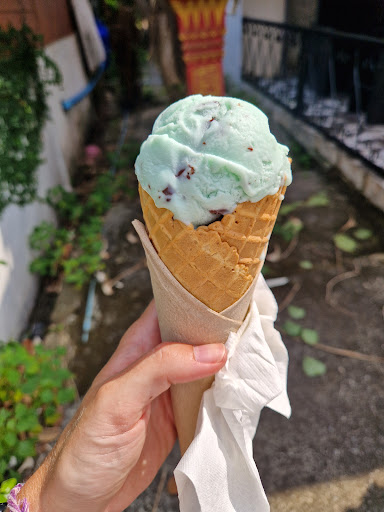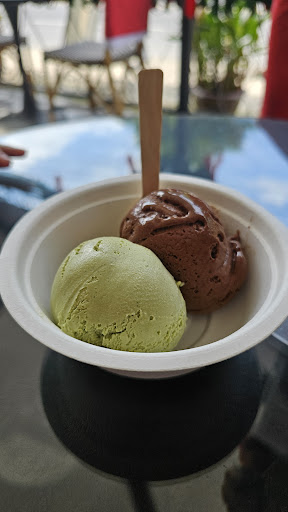 The member of staff was great - we were served quickly, and when everyone had been served he came out to make sure all the tables were clean, so top points to him! Whilst I'm always super appreciative of vegan options, my matcha coconut wasn't that good and tasted a little under sweet (which is surprising for Thailand) and not that smooth / a bit icy in texture. The vegan dark chocolate was good but not great. The comparison I make is with two other places in Chiang Mai, and can't compare with the rest of Samui. Big car park, tiny indoor space without seating so you have to...