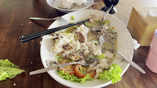 Many flies. Horrible waiters. Go for it if you donât mind working hard on the flies. Itâs so sad we donât have time to enjoy the food much. We had the fish which is pretty good but we had one hand waving for flies the whole time. The waiters didnât seem to help or at least take any action to help. We decided to leave while we didnât finish the fish because we couldnât stand working on the flies anymore. We had the fish left and I asked the male waiters if they want to have the food on the table. They even said no and laughed. We are upset the we couldnât eat the food and we had to pay for it. We didnât want to eat the food with flies. Many waiters donât understand Thai and donât understand English well. The Thai lady waiter is very rude. She even said we may have the problem because we donât want to pay. The whole conversation made we felt like they thought they are right to not caring about customersâ hygiene and take no action for the service. The restaurant looks dirty. We definitely donât...