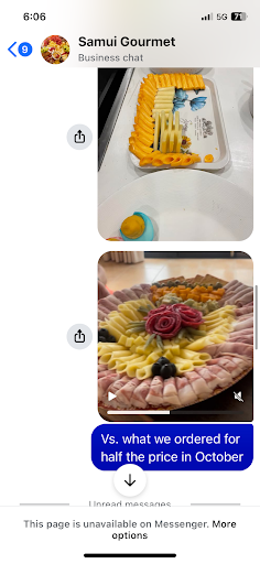 I reached out privately with photos and a calm message hoping to give feedback, especially since many of our party guests (who are also regulars) were shocked by the downgrade. Instead of resolving it, they blamed me, deflected the issue, and then blocked me on Messenger.