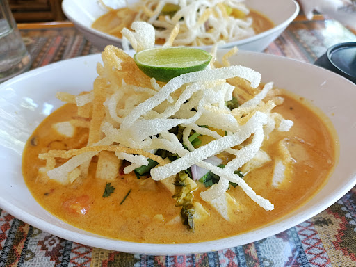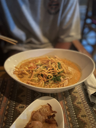 Read moreThe place looked very peaceful. There was good music playing and it wasn’t too loud at all🫶🏽 The food was really good I absolutely loved what my bff ordered which was the yellow fried noodles! I embarrassed myself a lot by letting out a scream when I noticed a giganormous bug on my leg. My bff was struggling to get it off of me since the bug was gripped to my pants. However, one of the employee picked the bug up very easily. I’m so thankful for him. My hero frfr (I’m just joking… the bug wasn’t dangerous at all). I hope he didn’t think we were being too dramatic😔 The scream that came out of my mouth was just a reflex… I’m just a girly at the end of the day you know Also bonus point for the little baby (I think it was the owner’s child) that was so cute and kept...
