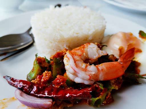 Read moreРесторан и кофейня расположены высоко на холме с красивым видом на город и гевейные плантации. До заката мы посидели в кофейне. Кофе очень вкусный, чашки большие и пироженые понравились: шоколадное за 80 бат и особенно пироженое лава с шоколадом с шариком мороженого и нарезкой фруктов. В ресторане были на улице во время заката, когда стемнело играла живая музыка не громко, удобно было разговаривать. В меню есть не все блюда, заказывали ещё отдельно кальмары жареные с чесночком не из меню. Готовят хорошо тайскую кухню, порции большие. Был промоушен на пиво Чанг, три бутылки берёшь, четвёртую дают бесплатно. Очень понравилось, обслуживают хорошо, хотя почти не говорят по английски. В конце вечера нас с семьей сотрудники ресторана довезли ещё до гостиницы, до неё мы бы шли минут 20 по темноте. Рекомендую это место. Вечером все столики в ресторане были заняты. Из иностранцев...