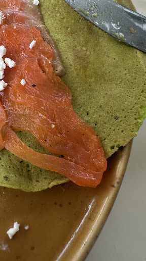 Read moreVery mid place. I came here hoping for an awesome breakkie vibe, the place was empty, no music, and felt a bit unwelcoming. I got excited again after ordering the green pancakes, they sounded great. The food came out pretty quickly but the look of that salmon was screaming “I’m done for”. Overall: -1 point for no vibe, -1 for stale salmon P.S. It’s cash only. I came alone to check it out before bringing the whole family — we usually spend around 3000 baht for 7 people, so we’d go somewhere that takes card for...