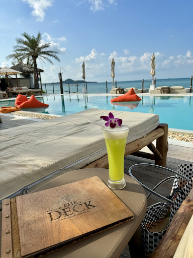 The deck beach club is very beautiful. I love how they decorate the place with warm and fun vibe. The foods are good in average portions. The price is acceptable compared how beauitful atmosphere in the beach club specially when it is in evening with beautiful sunset sky and not many people. But just a small problem, everytime i go there i have never seen anyone greeting us instead ignoring until i need to call while we are just standing waiting and need to call waiter walking pass us without looking. The waitresses are nice. They speak nicely and good english but the men make us not so comfortable. The way the waiter like to talk to us make us feeling unwelcome. Sometime when i talk something. They don't listen. They ignore and try to push us to do what they want us to do instead listening to us and explain. Cut off this problem, i enjoy the view and the fun vibe at the deck beach club very much and will go back for sure, so i give 5 starts one of the most beautiful beach club you must visit in Samui !! Good time to visit 4 pm. And Stay until sunset it is...