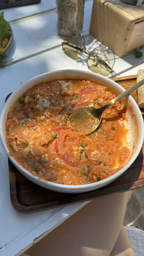 We ordered the Baked Spinach with Cheese, but it arrived undercooked and inedible. Additionally, some of the listed ingredients, such as olives and tomatoes, were completely missing. We asked for a replacement, but they served us the exact same undercooked dish again. We were hungry and ordered a chicken skewer – it was marinated but extremely dry. The baked potato was not fully cooked inside, and the vegetables were served in a sauce that was unpleasant to eat. In the end, we didn’t eat the food at all. Despite having five waiters at the restaurant, they were more focused on the sea view than on the customers. When we asked for a solution, we were still charged for all the food we didn’t touch, with only a 10% discount as “compensation.” Shame on a place that serves food like this and still charges for it! I do not recommend this place – apart from the view, there is nothing...