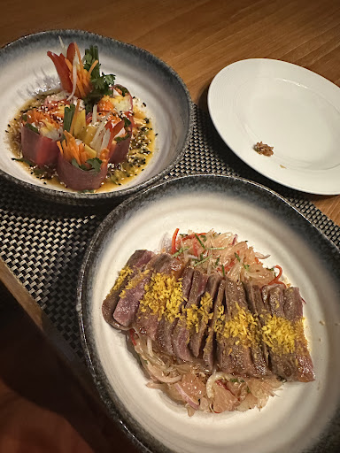 Read moreW has some Dubai cool vibe in the design. Love the Woodbar on the entrance floor, very instragrammable. Entrance to the restaurant is one floor down. They offer everything, Thai, Chinese, Indian, European, burgers and Thai. All the dishes had a beautiful presentation, didn’t not miss a beat. But the food didn’t wow me. Many dishes were just average in taste. The steak was chewy, my Chinese baby calamari was too fried and chewy, Thai crab curry too sweet, Italian pizza avg, Japanese raw salmon salad didn’t come w enough sauce too dry ( a bunch of feedback from a few people at our table), but the service was superb and the atmosphere great. Thai Lamb shank was great. It is just not authentic in many national cuisine in the taste. The visual part didn’t miss a beat. How can this be?! I was...