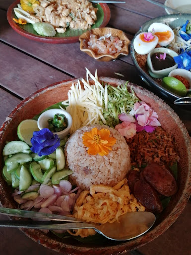 Read moreA lovely spot quite deeply tucked away in serene, beautiful natural surroundings in soi Kao Phra - the vibe here is incredibly relaxed, and the decor really adds to the rustic charm. The cozy restaurant is also connected to the lotus pond - where the team handpicks the lotus flowers and leaves for the menus. Lotus petals seem to be largely used here to incorporate to the dishes - such pleasant and beautiful touch. The food is not only delicious but also beautifully presented yet entirely organic. They offer both a regular and health-conscious menu, so there's something for everyone.