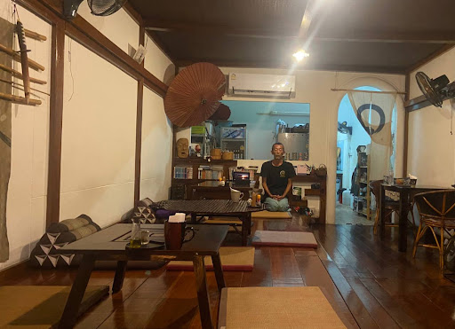 There are a few tables and then some tables that had pillows next to to sit on. The...