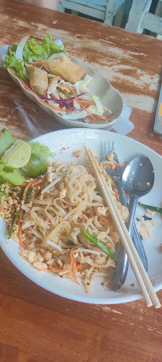 After walking along the streets and the beach looking for a reasonably priced place to eat with Thai food for about 20 min I was about to give up. I actually stumbled upon this authentic Thai restaurant by accident. The restaurant next door, that I had read reviews on Google for, was closed. I asked the woman here if she offered tofu and she handed me a vegetarian menu. She was very friendly and the prices are very reasonable for the area. I asked for the panang curry with tofu and she asked me how much spice I wanted. The portions were the largest I have received on this island so far and there was a lot of tofu in the curry as well. It was the most delicious curry I have had so far! And I live in Chiang Mai... She also gave me the wifi password. I definitely recommend coming here! It's a little off the beaten track but well worth it. Plus you get the real authentic feel of eating like a local. I would much rather support her little restaurant than a big tourist restaurant any day! Best Thai food I've had on the whole...