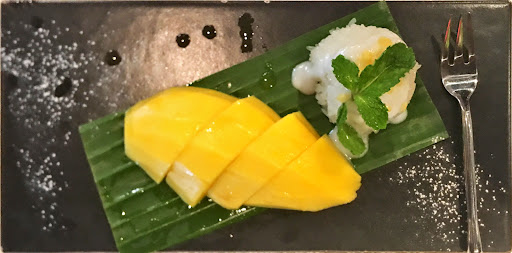 The pork dish was an explosion of flavours which were perfectly balanced. The squid was slightly crunchy on the outside and superbly tender on the inside and the intensity of the chili was just right. The mango with the sticky rice was perfectly ripe and the rice itself was topped with delicately toasted mung beans.
