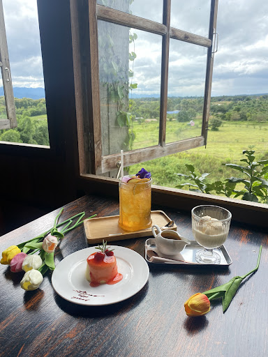 Read moreTucked deep in a long soi surrounded by a huge farm filled with rose's and other plants this place is well worth the trek. It truly feels, as they claim, as if you are in Switzerland. The coffee shop is perched on a hilltop overlooking the western Myanmar mountains and is surrounded by flowers. The coffee was equally good as well. A definite stop over going to or...