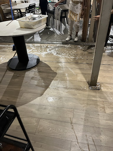 เก็บร้านตั้งแต่ 22.00 เก็บร้านที่ไม่ใช่เคลียขยะ หรือกวาด แต่เป็นการเอาเก้าอี้ซ้อนๆๆๆกันขึ้นวางบนโต๊ะ สาดน้ำลงพื้น ขัด เอาของวางขวางทางออก ปิดไฟตรงโซนเอ้าดอร์