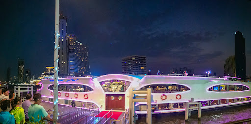 A must: impressive sightseeing at night, friendly service, excellent price-quality. If you come to Bangkok for the 1st time you must see the city and the sights at night and this is an excellent way to do it. You'll see Wat Arun, The Mandarin Oriental, The Riverfront all pass by at a comfortable speed while enjoying a bit from the buffet. I really don't understand the negative reviews people are posting about the food: I've visited Bangkok several times and NEVER got sick. So people getting sick are probably used to eating only the most sterile and tasteless food or they simply should not travel in the first place. The buffet is a buffet, it's not fine dining but it's okay and that's why it's called a buffet and not a gastronomic dinner. Staff are very friendly and do their best to make your trip as comfortable as possible. Great value for money, I guarantee you won't regret it as long as you do not expect a gastronomic meal at...